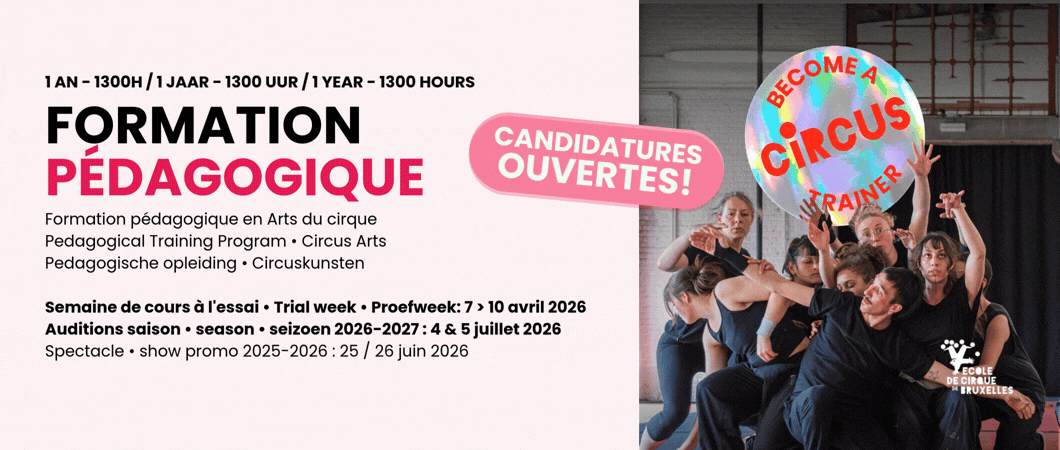 Depuis 32 ans, l’École de Cirque de Bruxelles forme chaque année une dizaine de formateur·ices de cirque. Notre objectif est de dispenser une formation approfondie basée sur les besoins pédagogiques actuels dans les Arts du cirque.